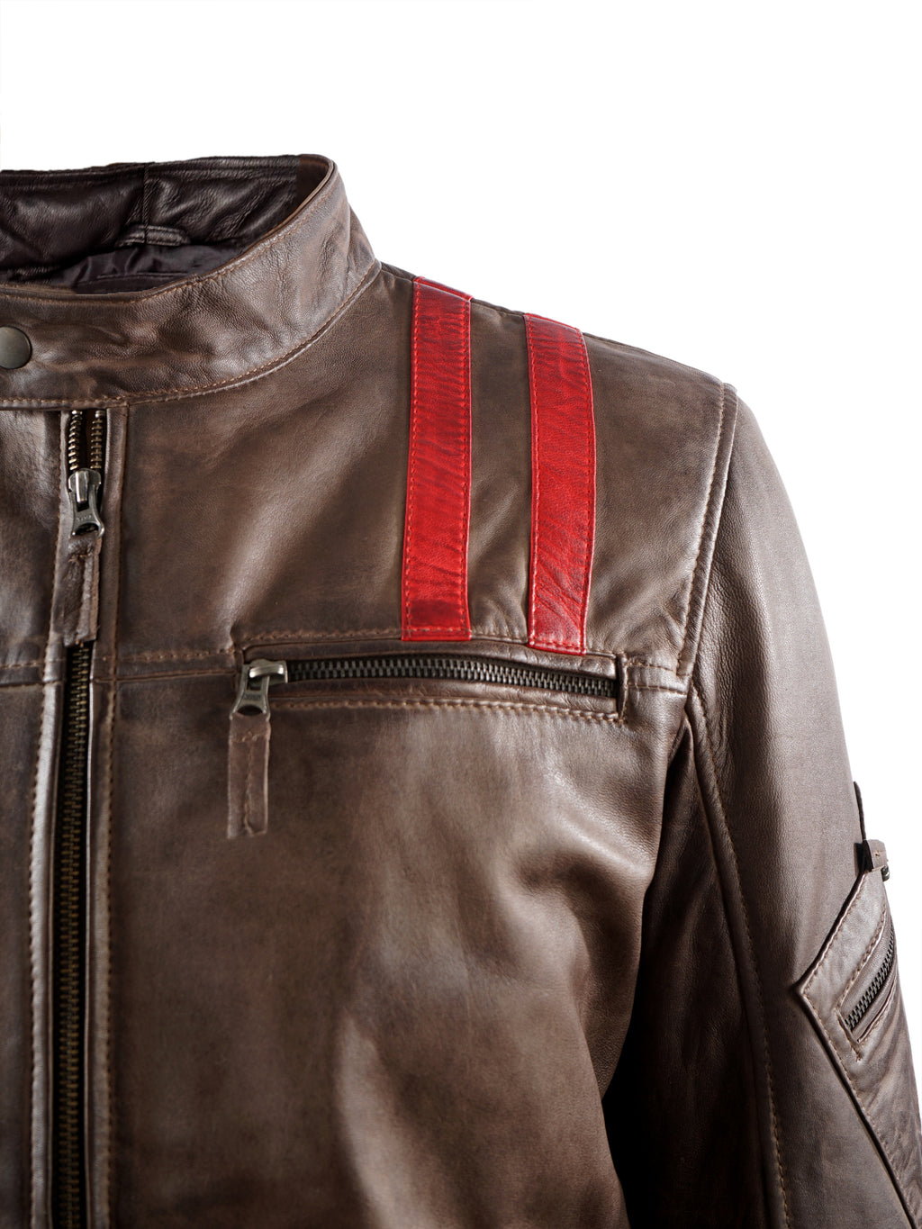KINGSTON MENS BIKER LEATHER JACKET- BROWN