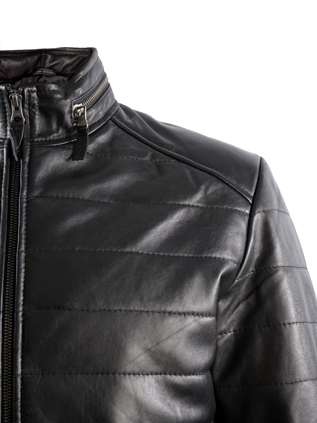 TIAGO MENS BIKER PUFFER LEATHER JACKET- BLACK