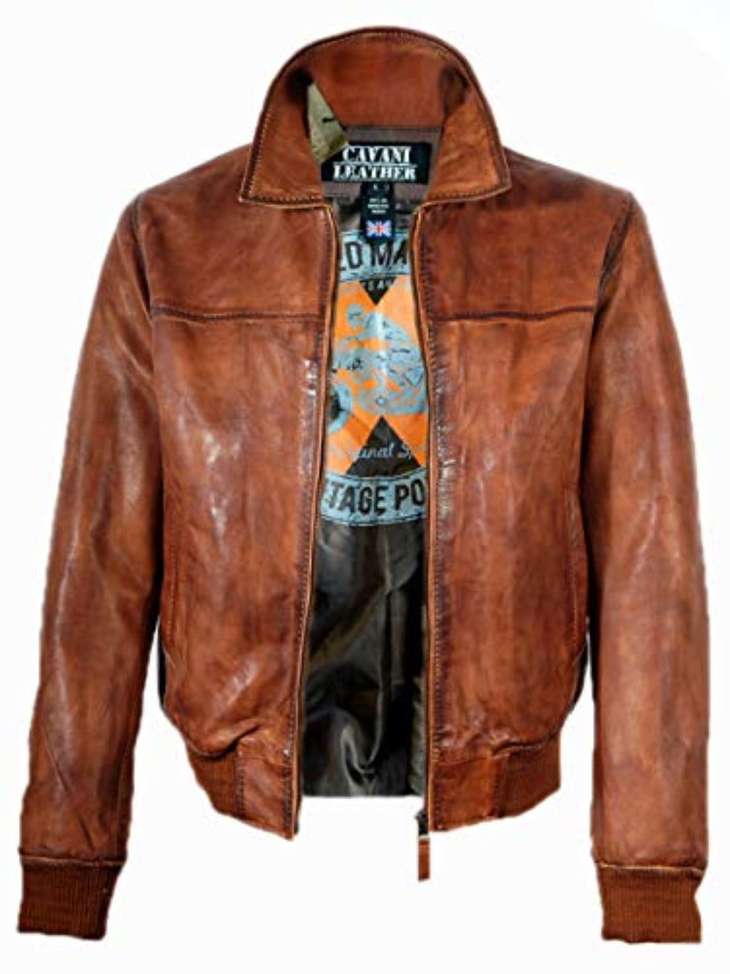 ADDISON MENS BIKER BOMBER DISTRESSED LEATHER JACKET: TAN